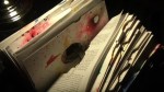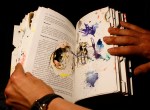 Materials: book board, spray paint, copper tape. This piece utilizes capacitive touch sensing to turn this book into a musical tool.